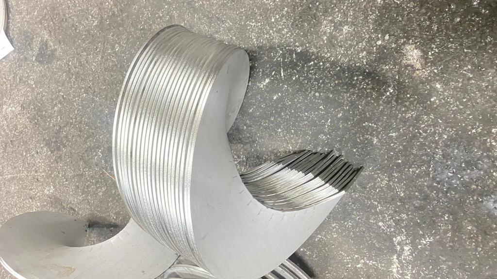 316 Tİ Yaprak Helezon: 316Ti kalite yaprak helezonlar , az miktarda Titanyum (Ti) içermektedir, oranı %0,5 civarındadır. Bu kalitenin diğer iki (316 – 316L) kaliteden en büyük avantajı sıcaklık yükseldikçe daha uzun süreli dayanımı olmasıdır. 316Ti kalite yaprak helezonlar 550-800° C arası yüksek sıcaklığa maruz kaldığı ortamlarda kullanılır.